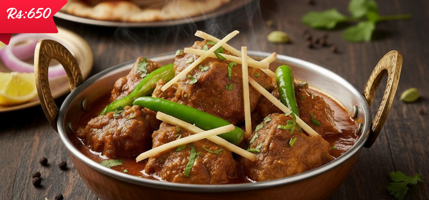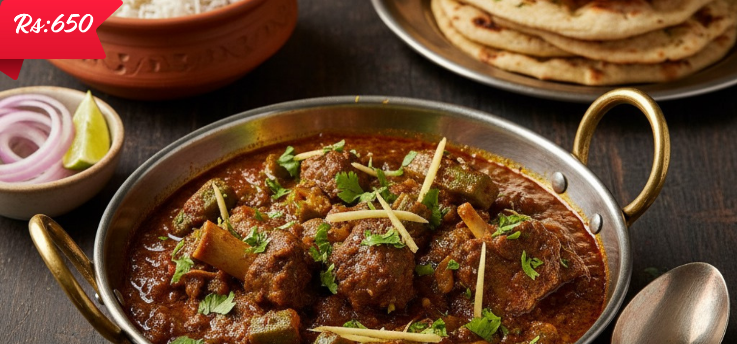 - Tuesday: Palak Gosht, Bhindi Gosht, Kaddu Gosht