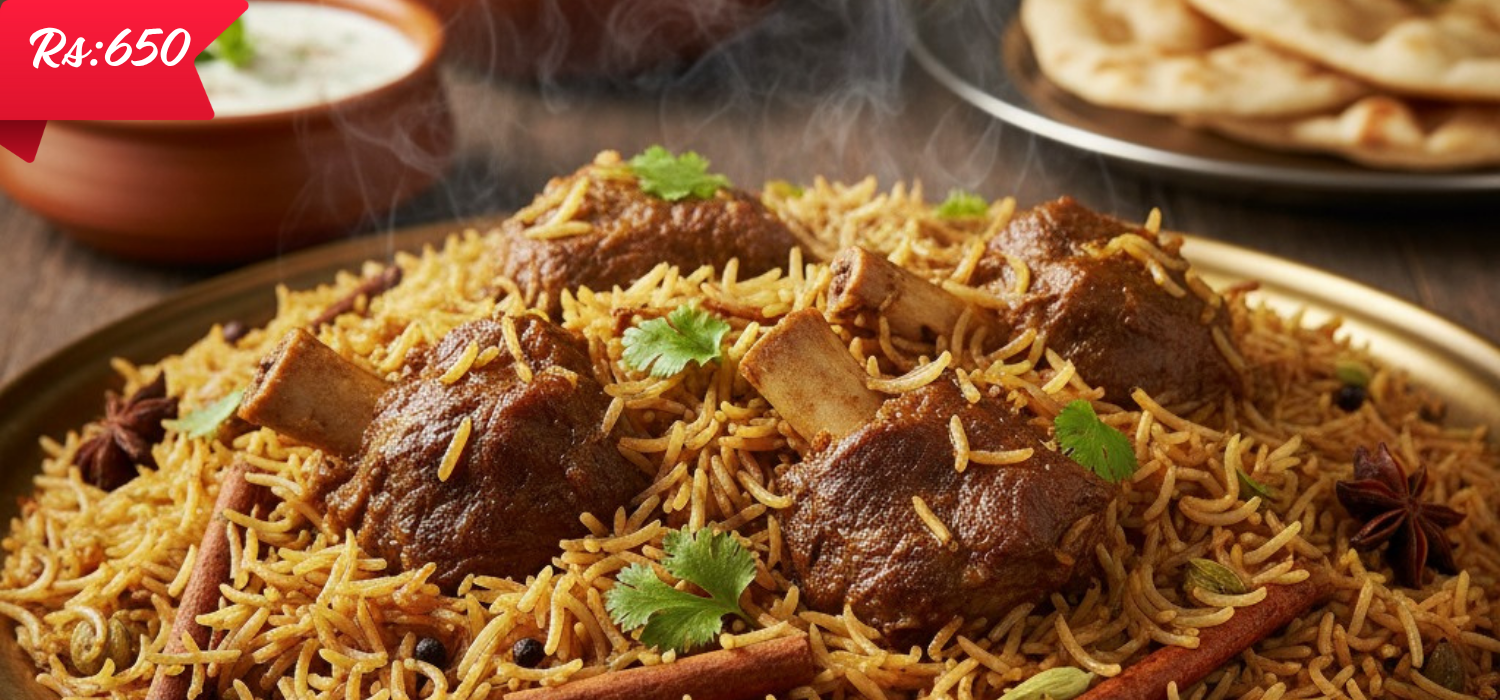 - Wednesday: Beef Pulao, Beef Biryani, Chicken Malai Boti